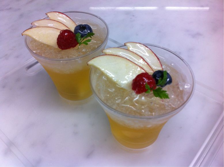 リンゴのゼリーの上にサイダーのゼリーがのってます。